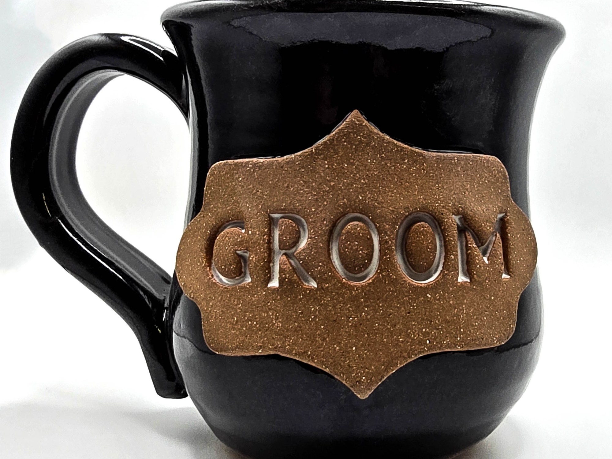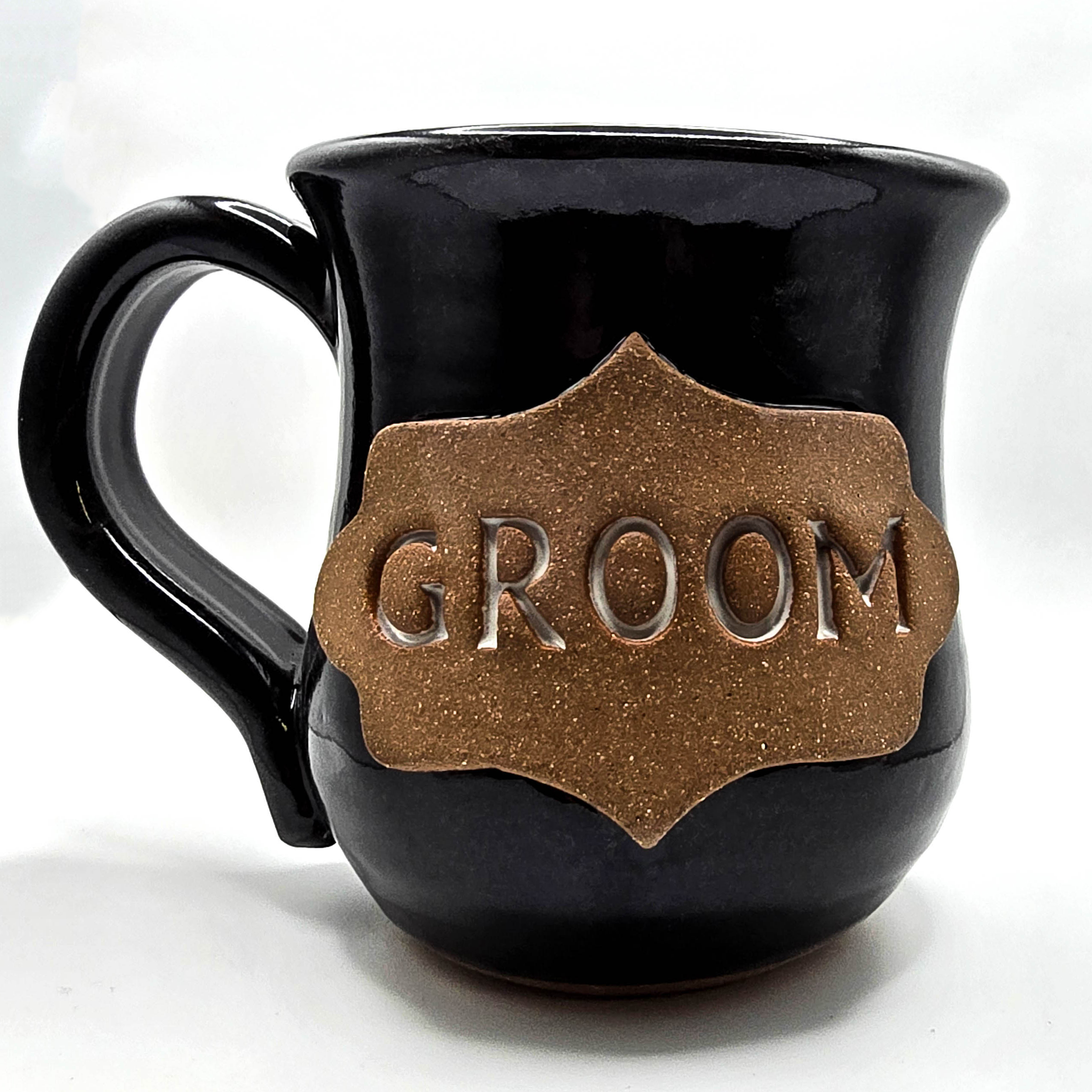 Brand New Groom mug, Stoneware glazed in Black. approx. 14-16 oz.