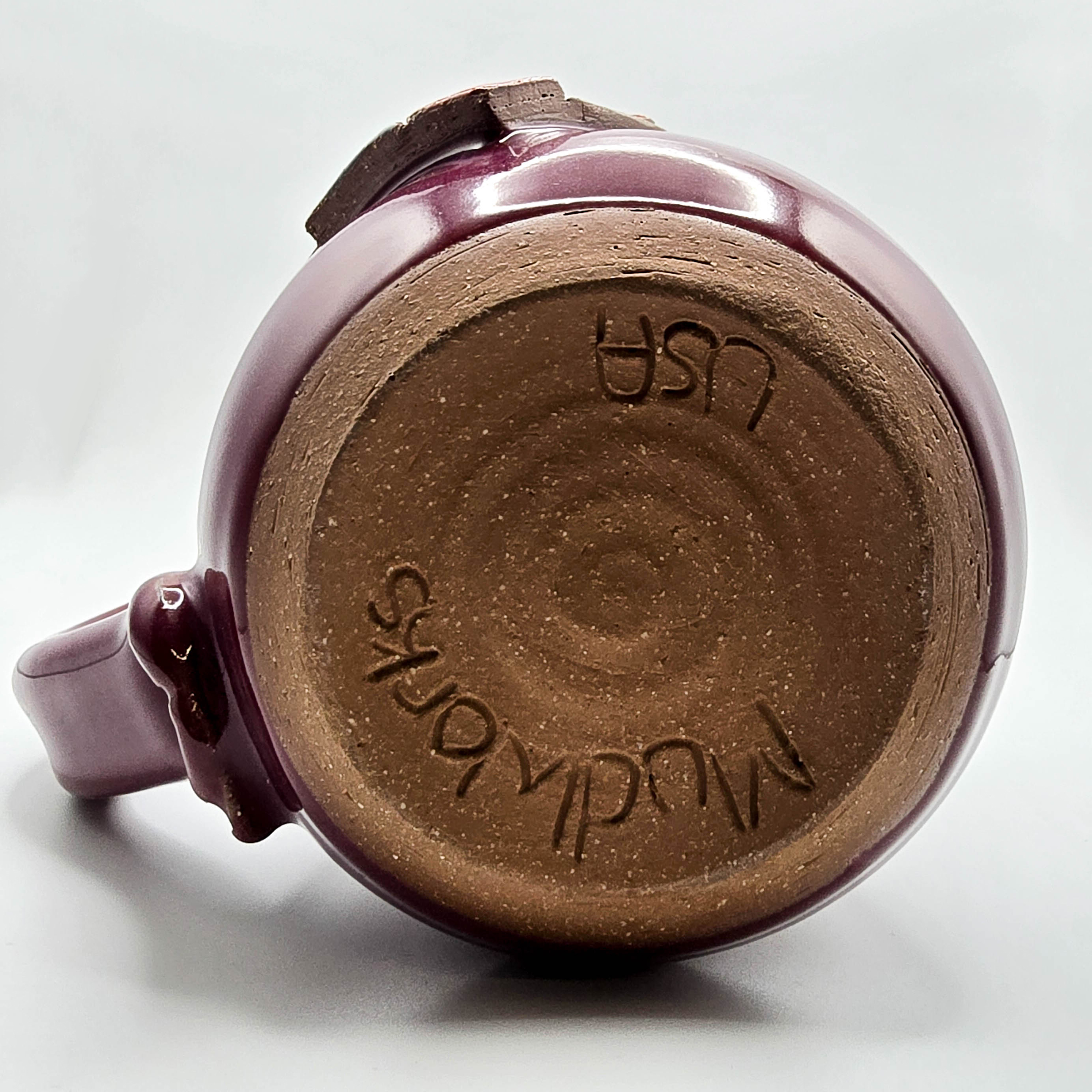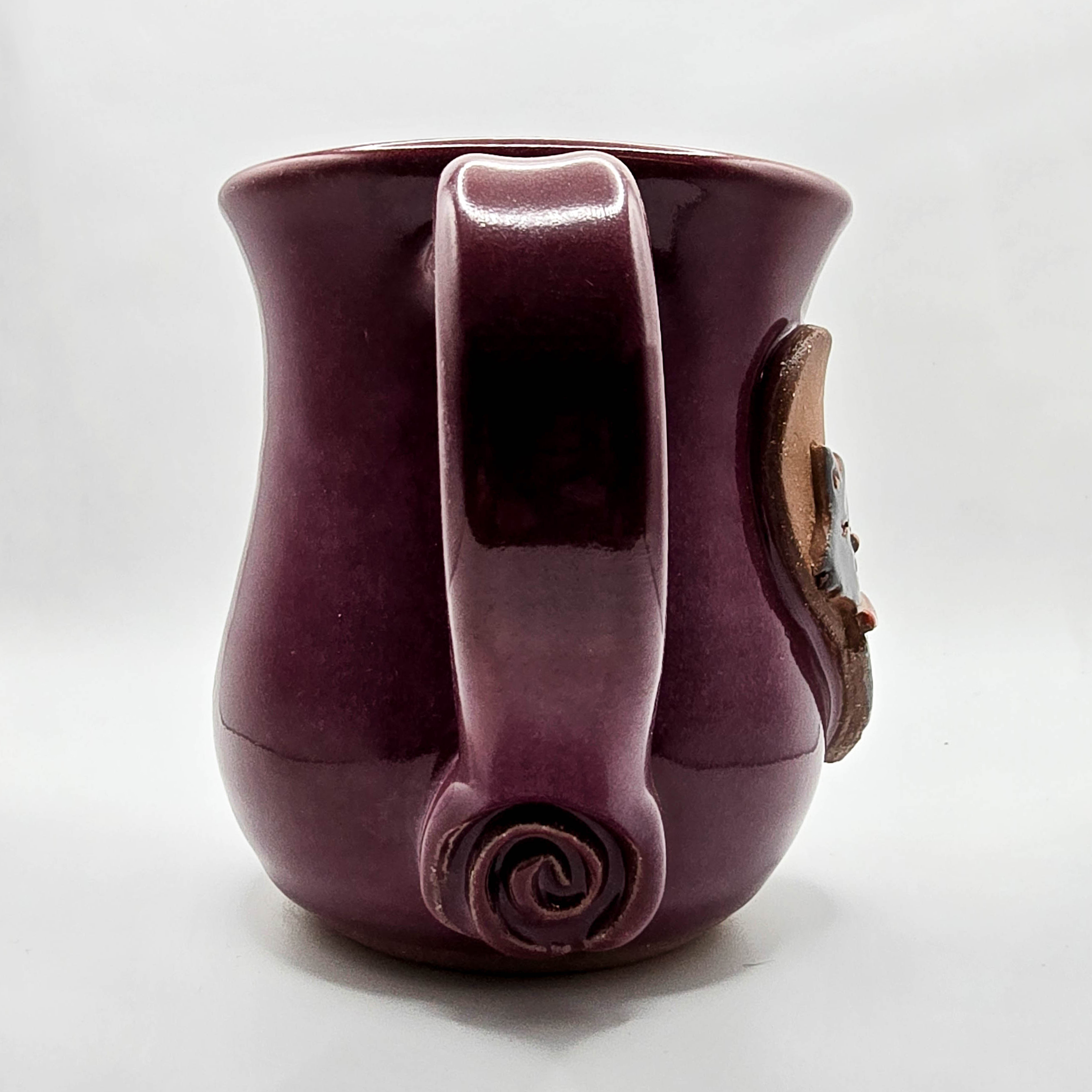 Happy couple of kittys ina heart on Stoneware mug in Raspberry glaze. 14-16 oz.