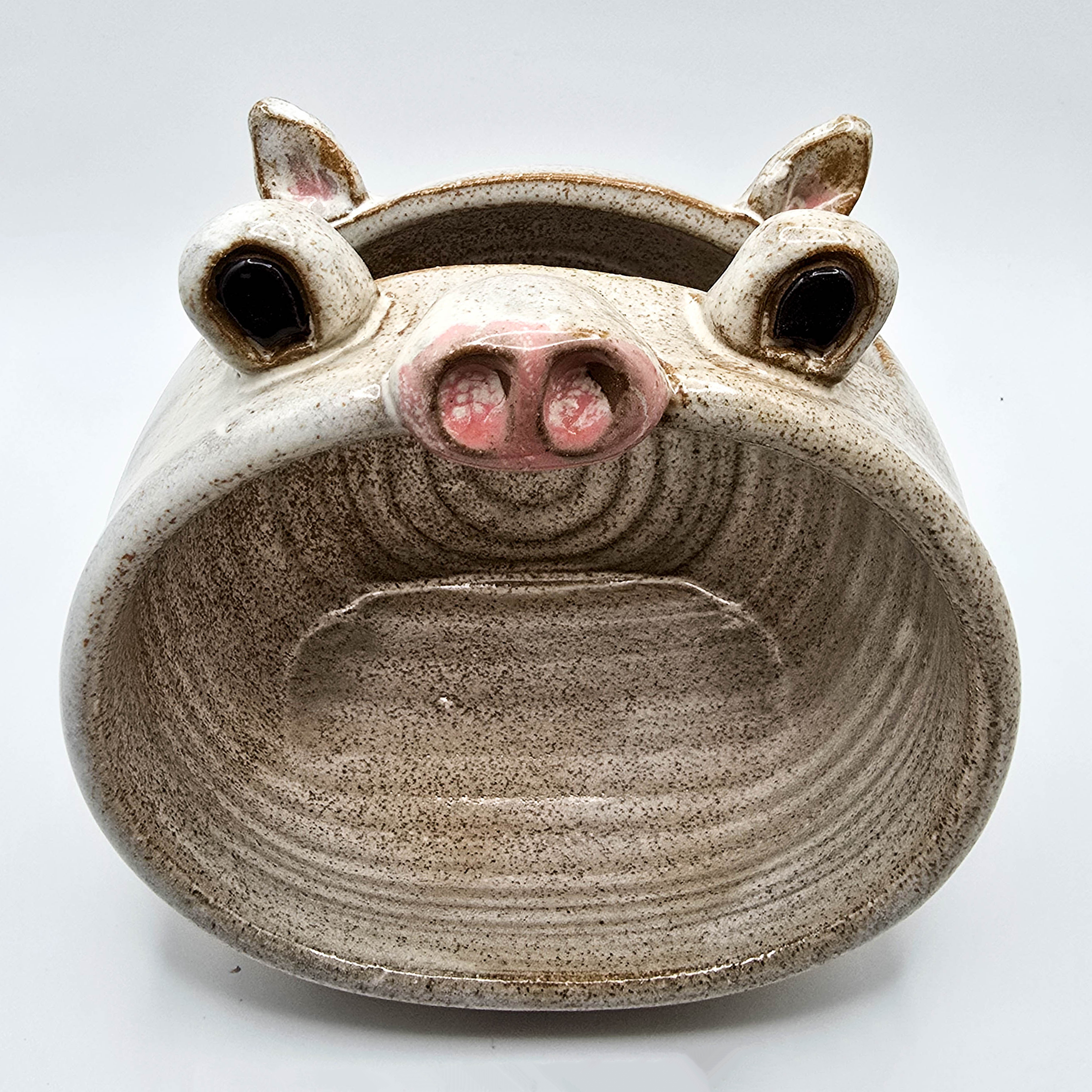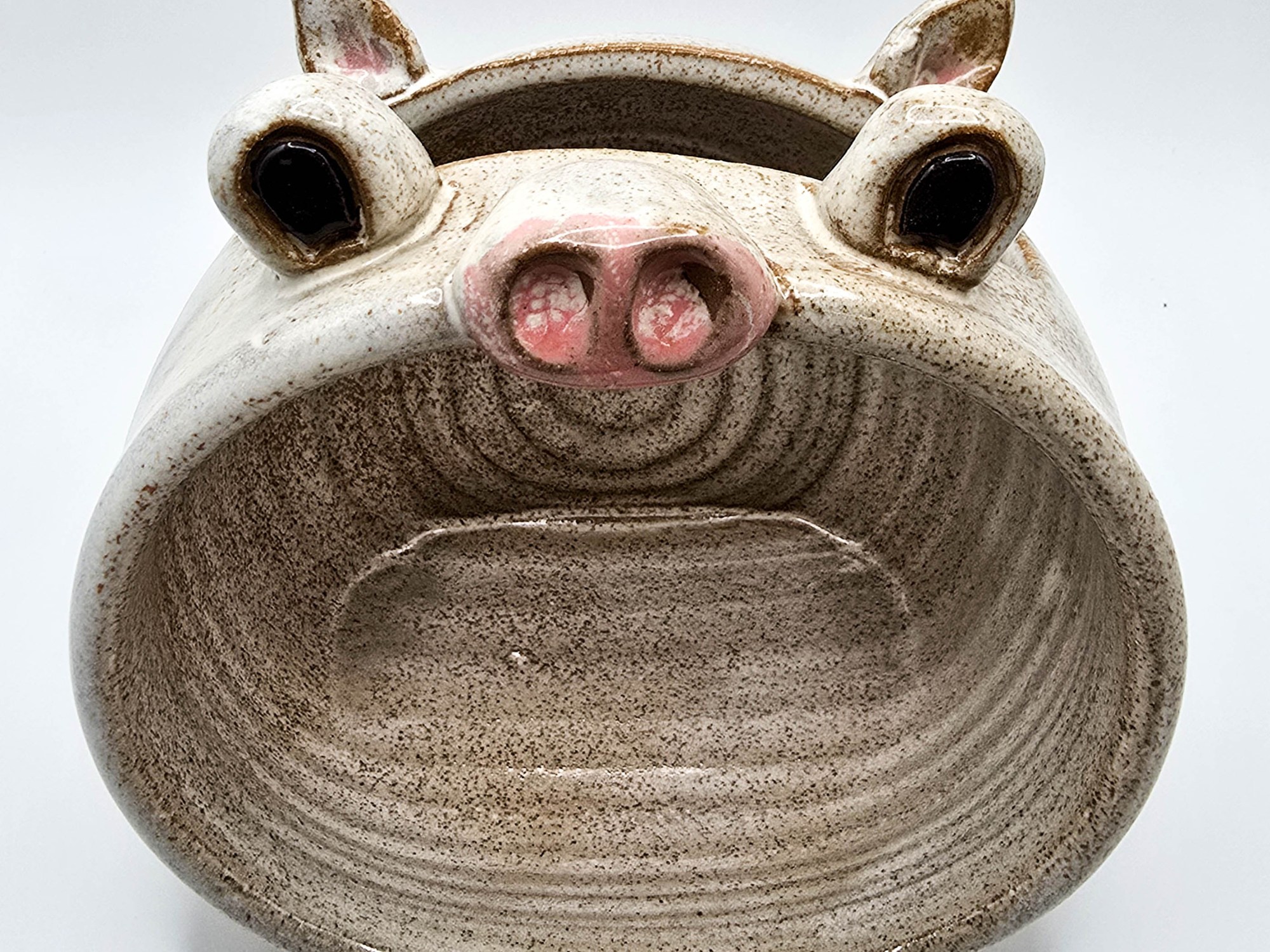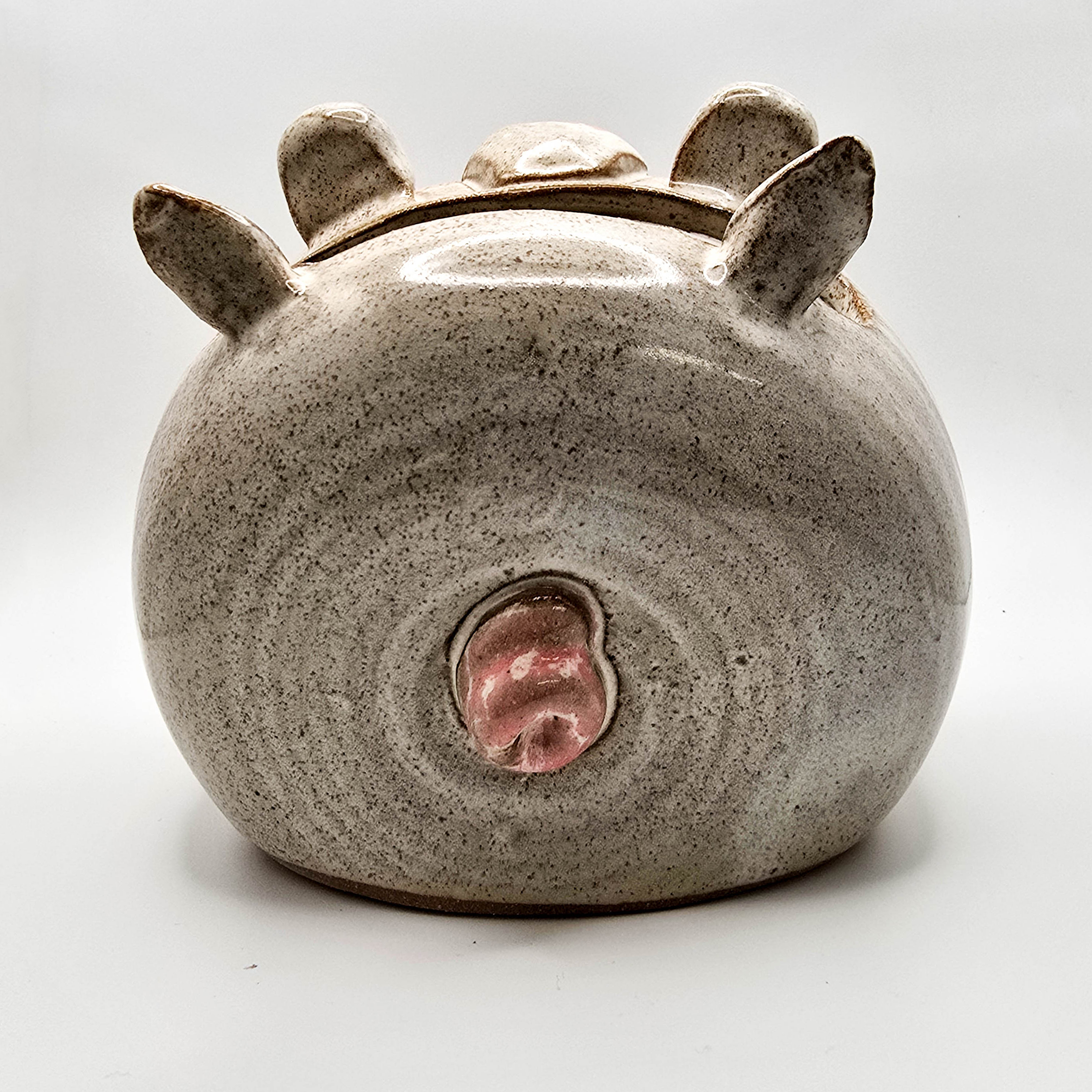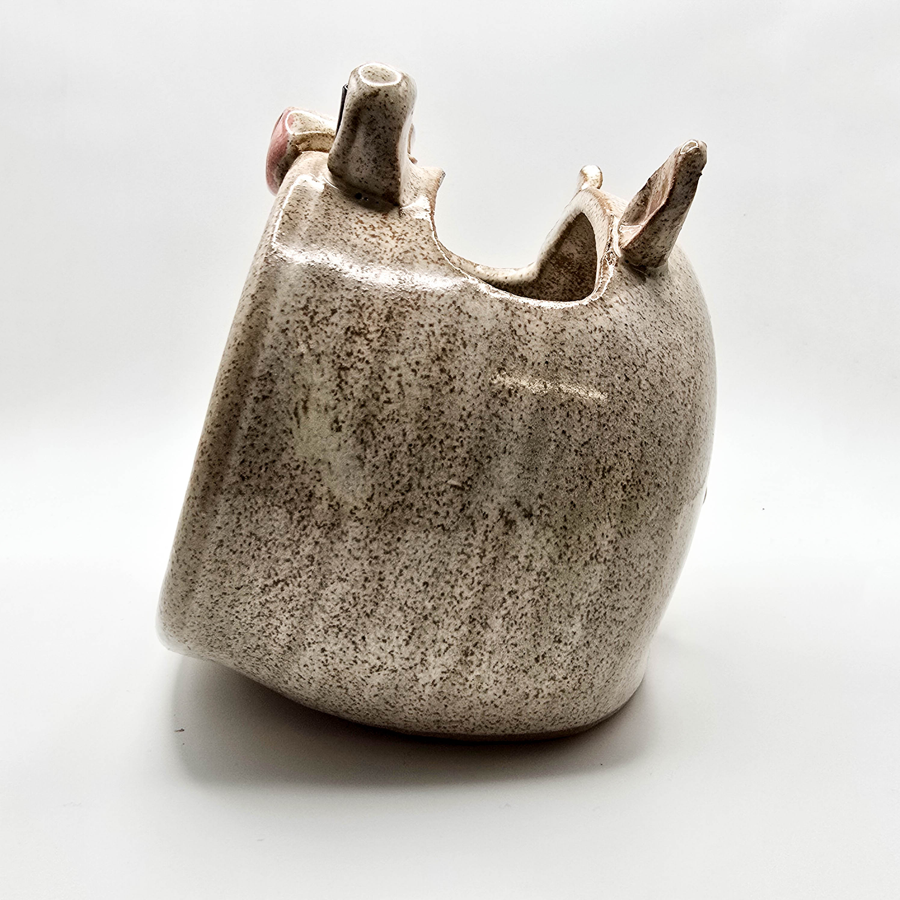 Pig Phone Amplifier, Stoneware glazed in sandstone. 4″x 4″x 5″