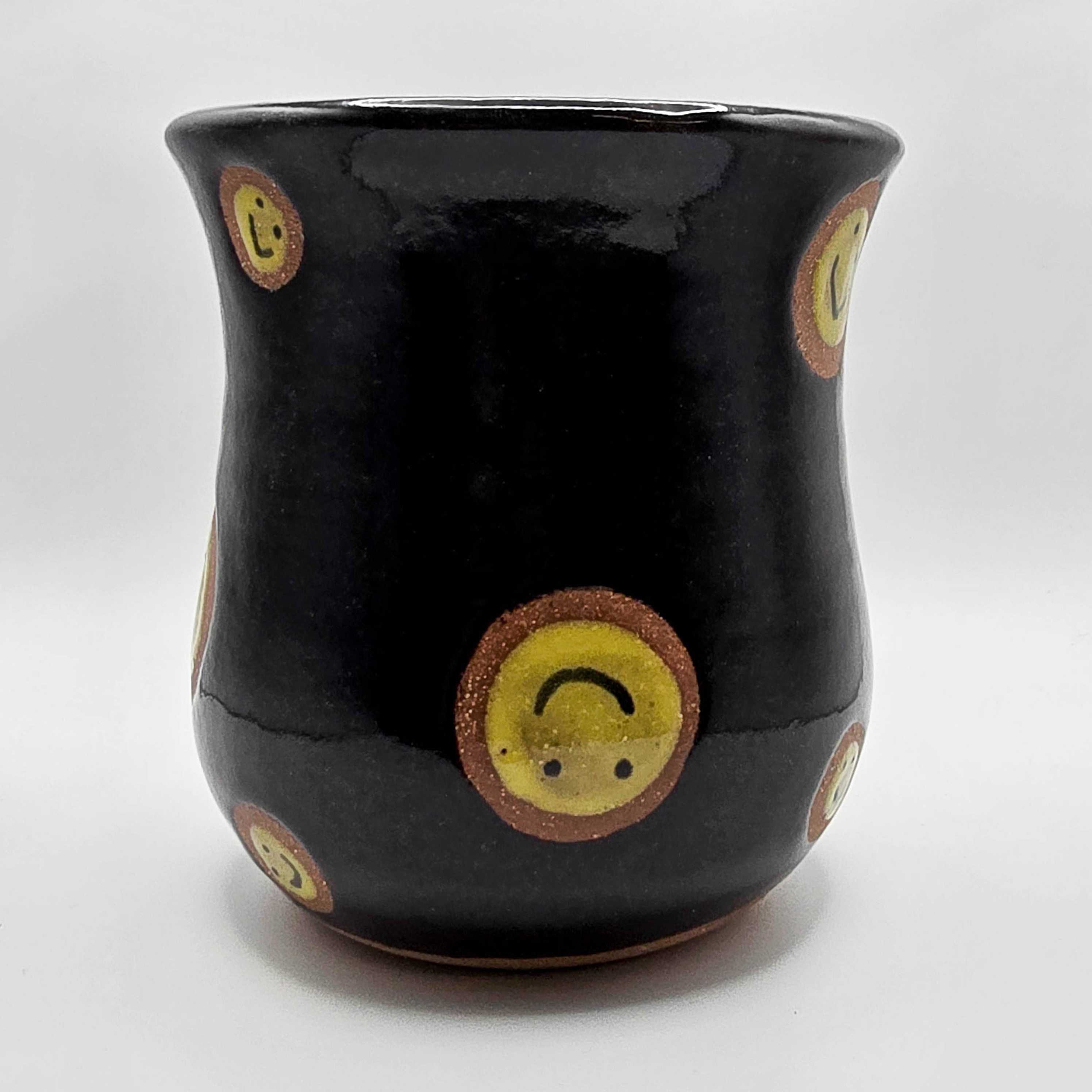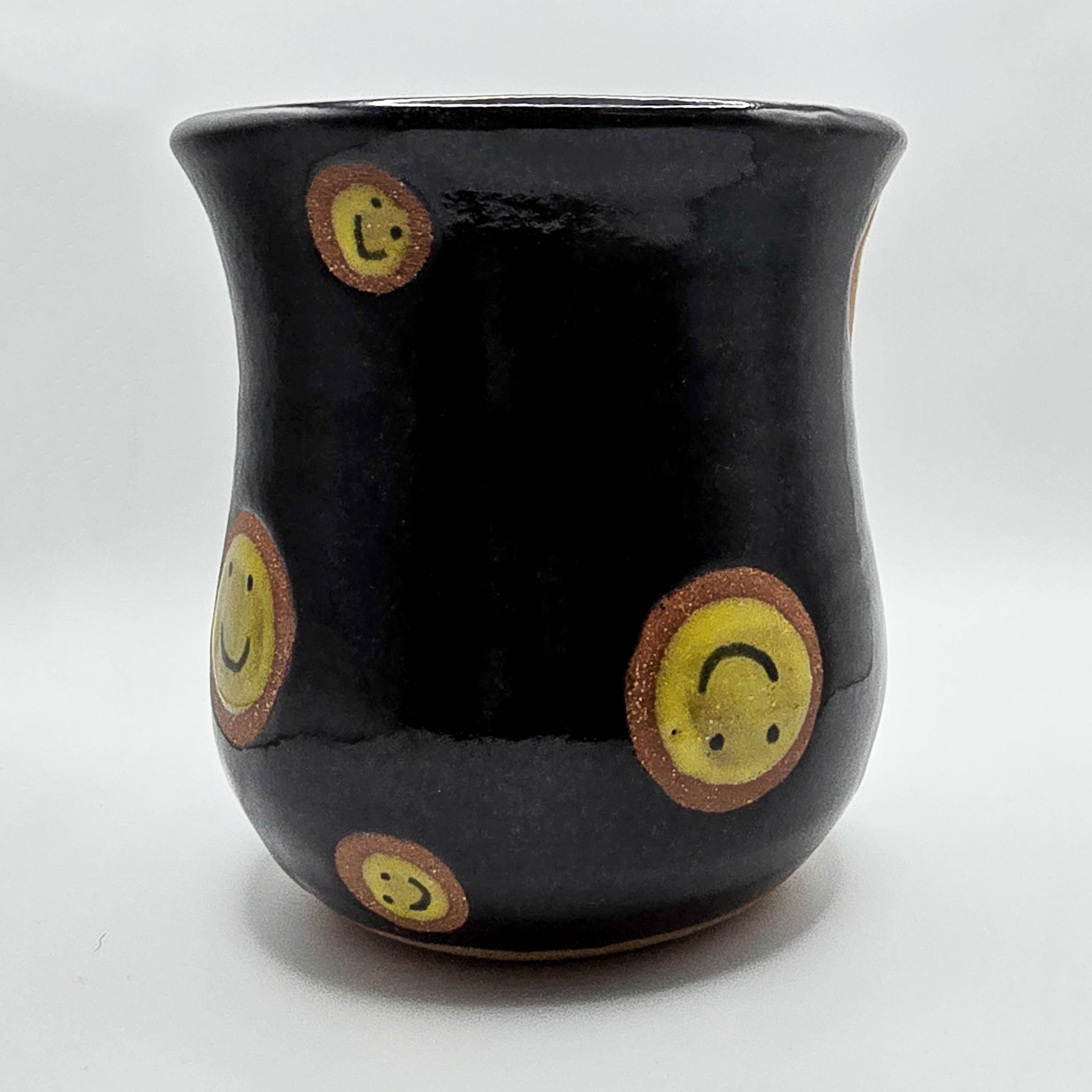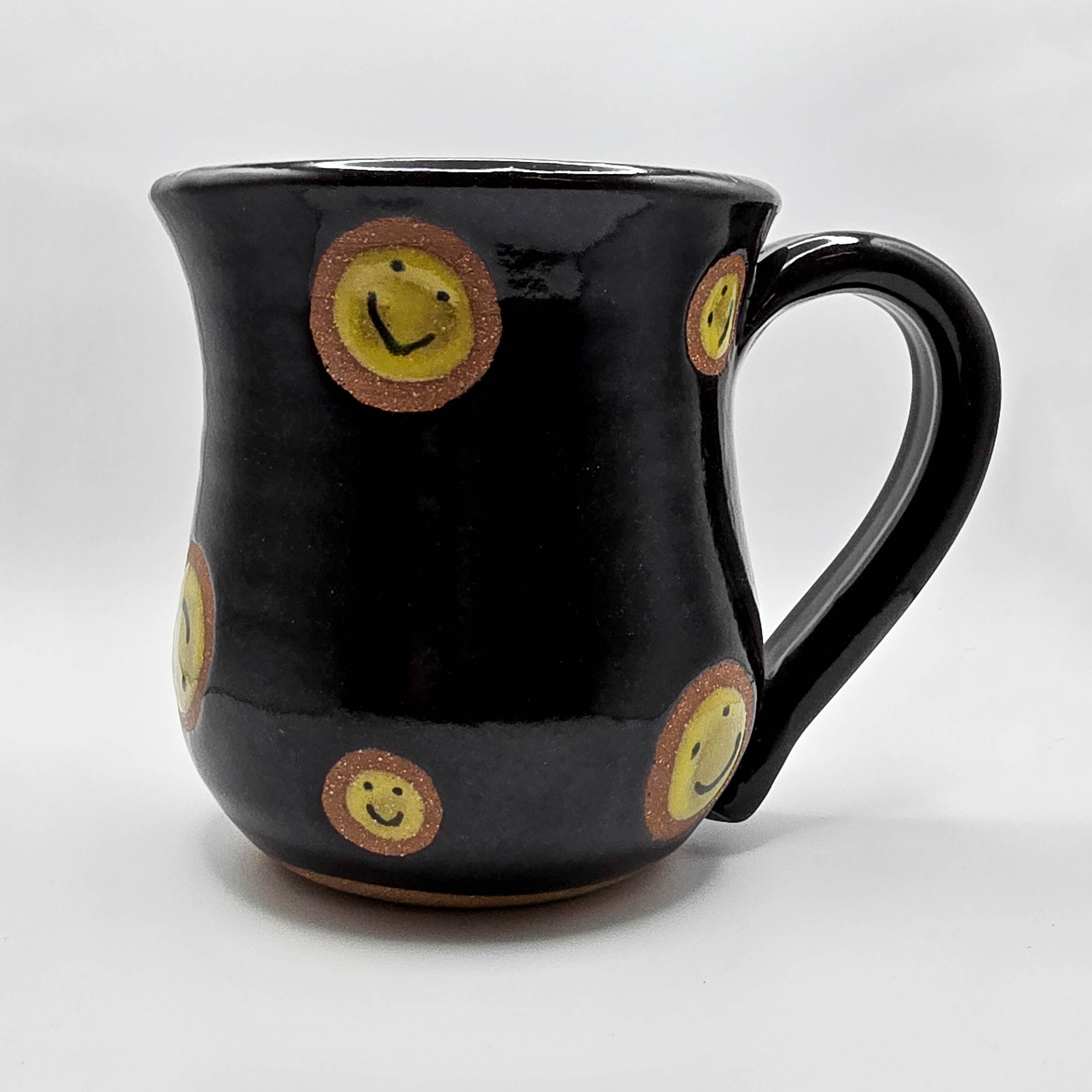 A Happy Mug, textured smiley motif, Stoneware glazed in Black. approx.12-14 oz.