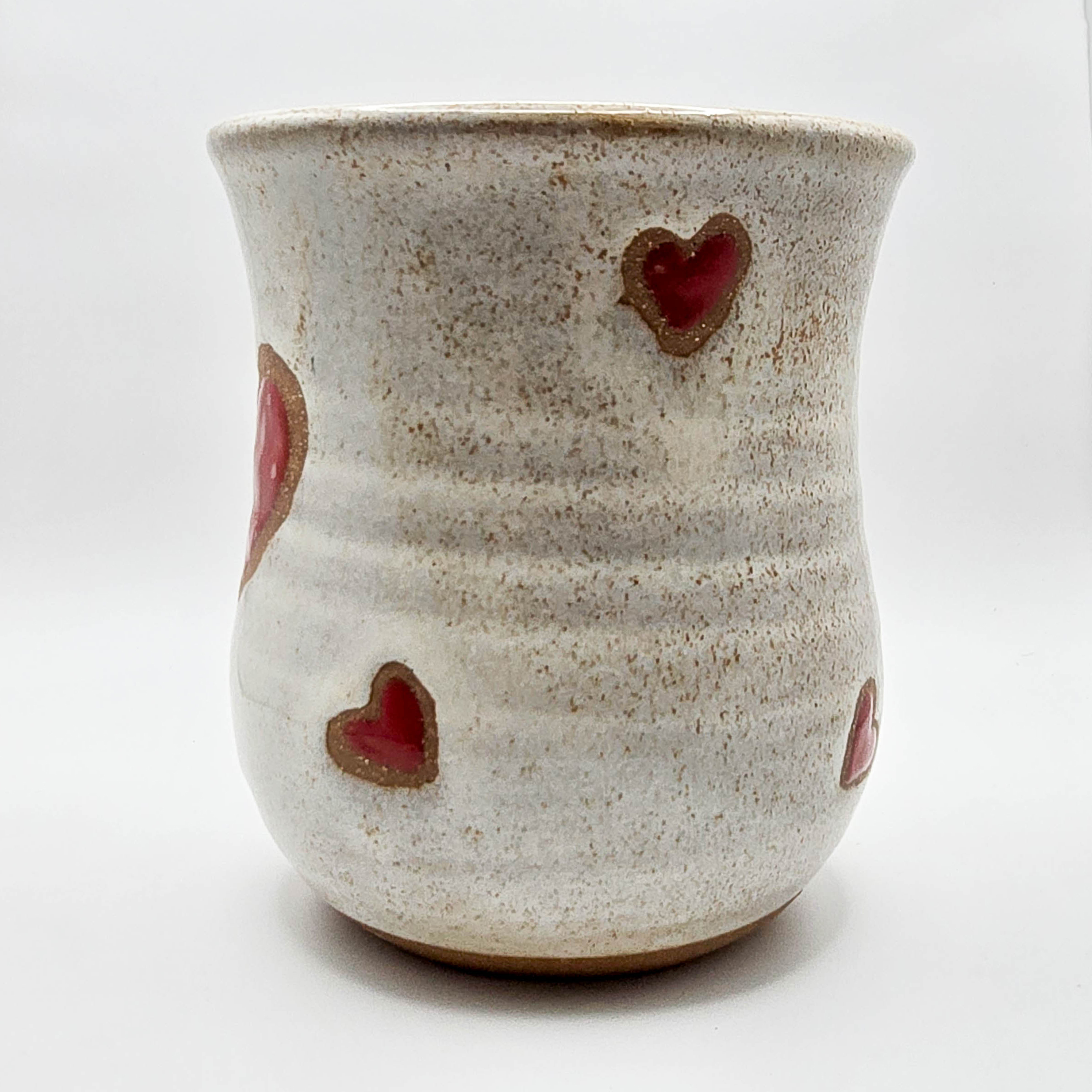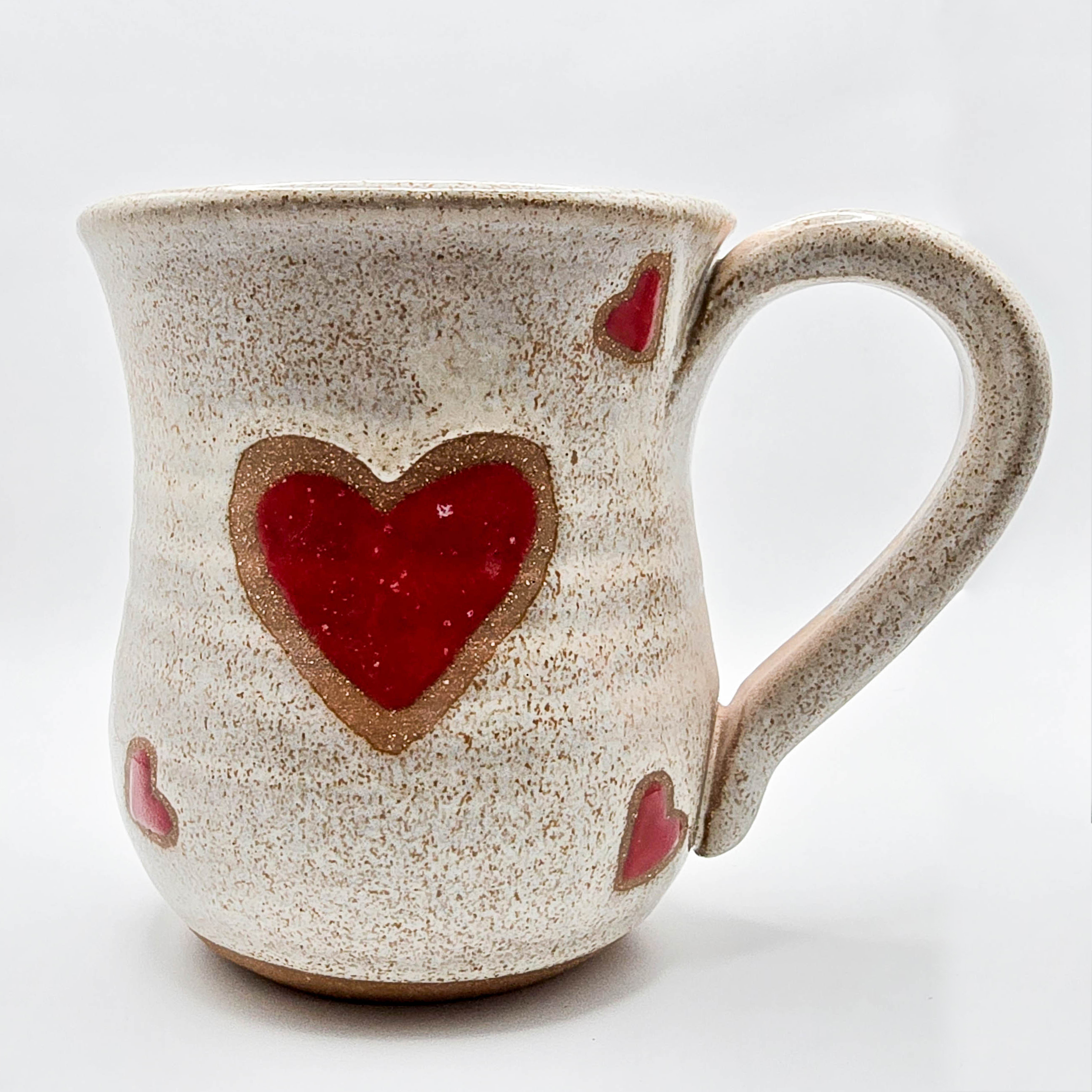 Hearts & Coffee on Stoneware in Sandstone glaze. approx.14-16 oz.