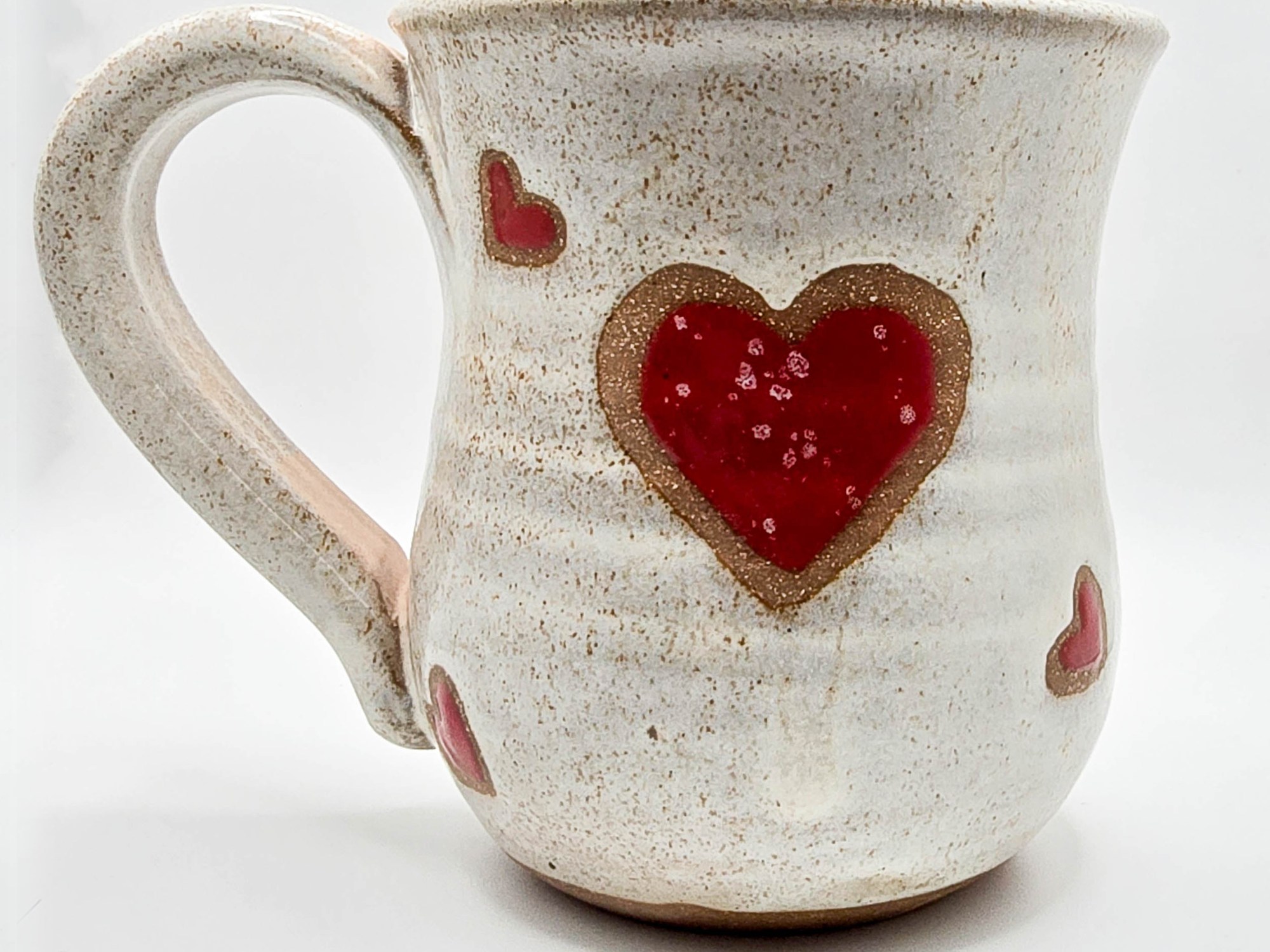 Hearts & Coffee on Stoneware in Sandstone glaze. approx.14-16 oz.