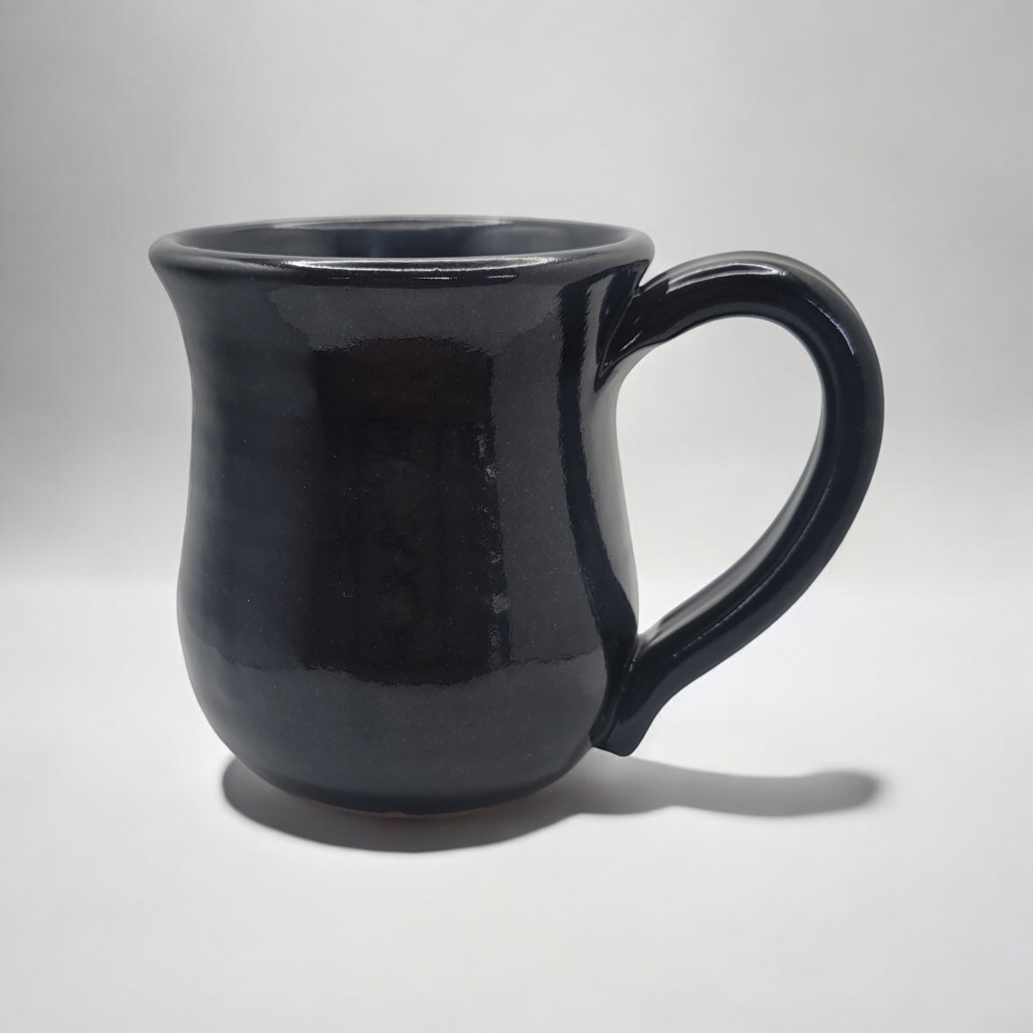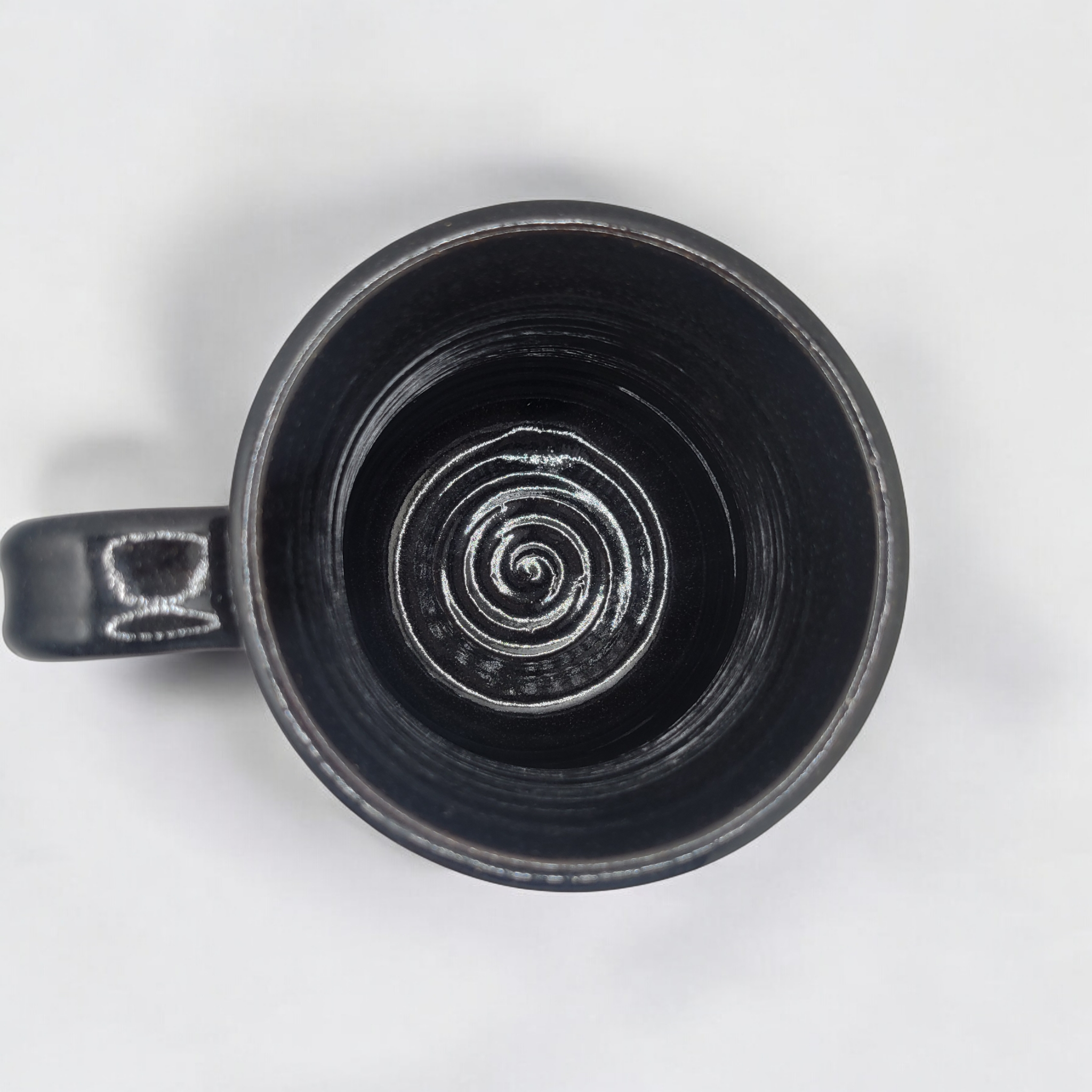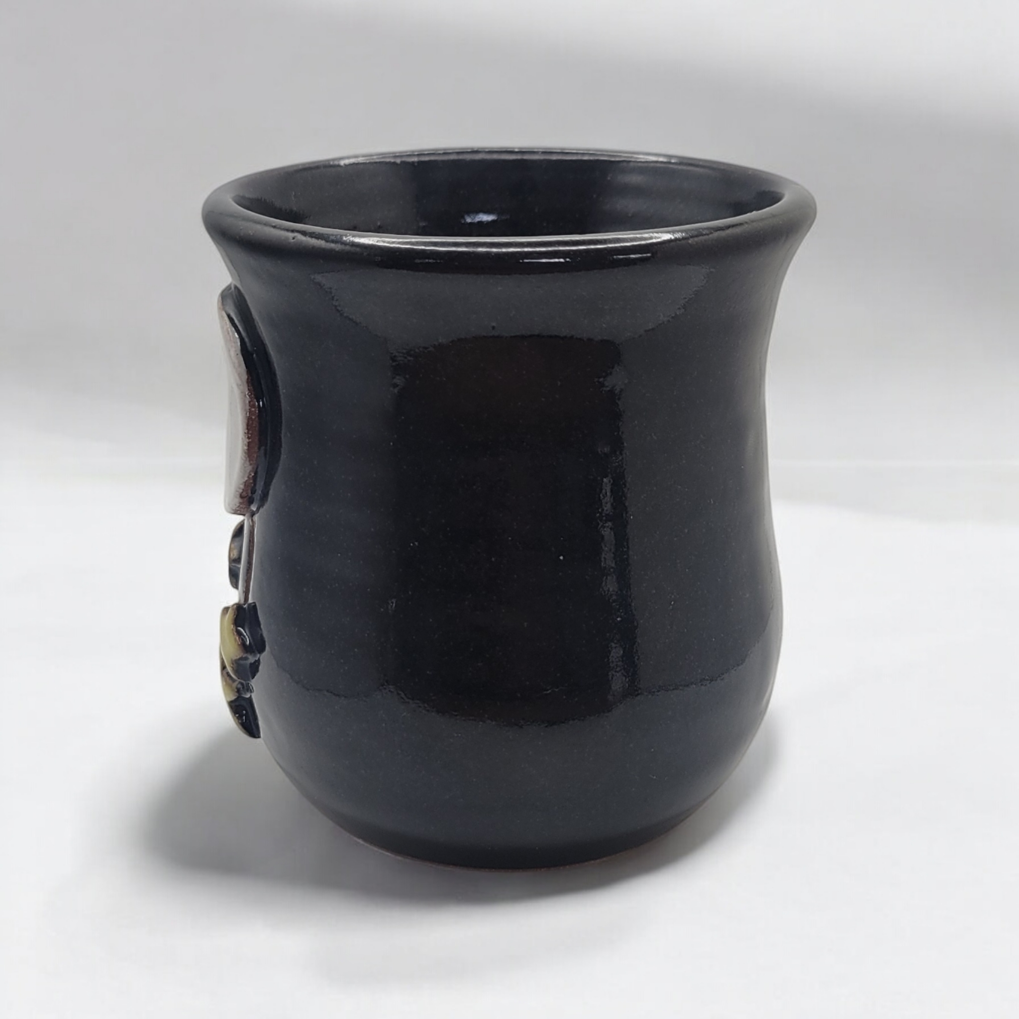 Crescent Moon with hanging stars, Stoneware on Black glaze. 14-16 oz.