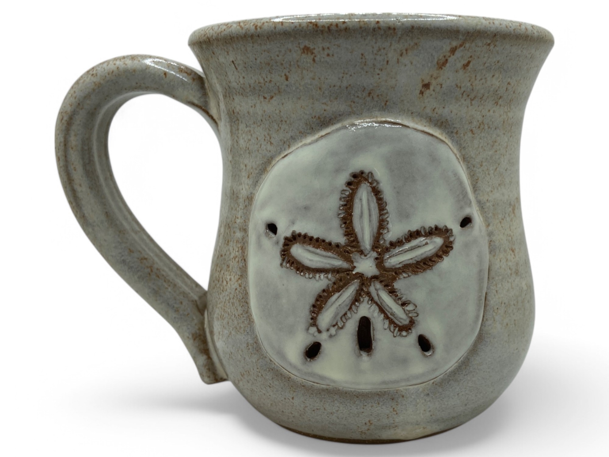 Sand Dollar mug, Stoneware on Sandstone glaze. 14-16 oz.