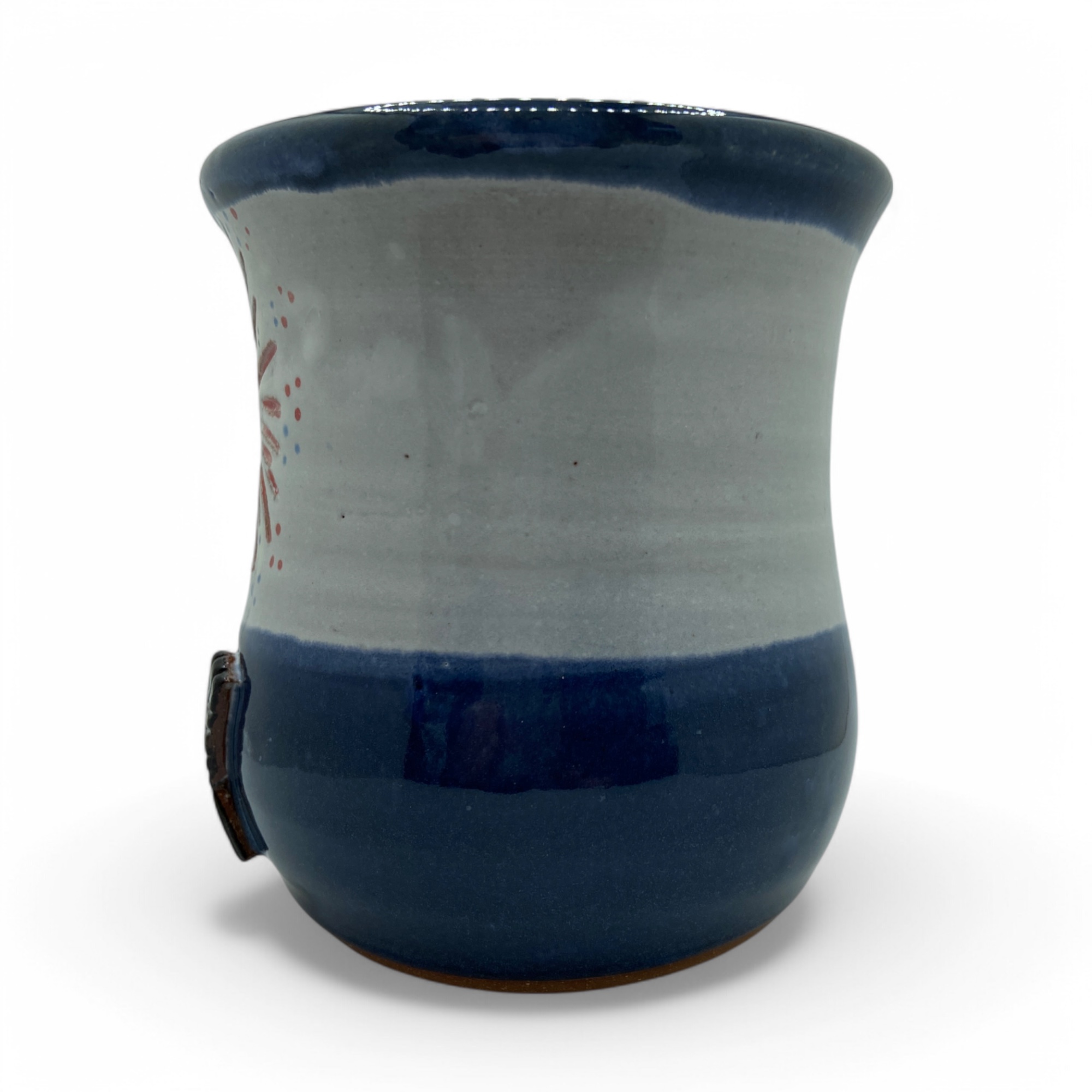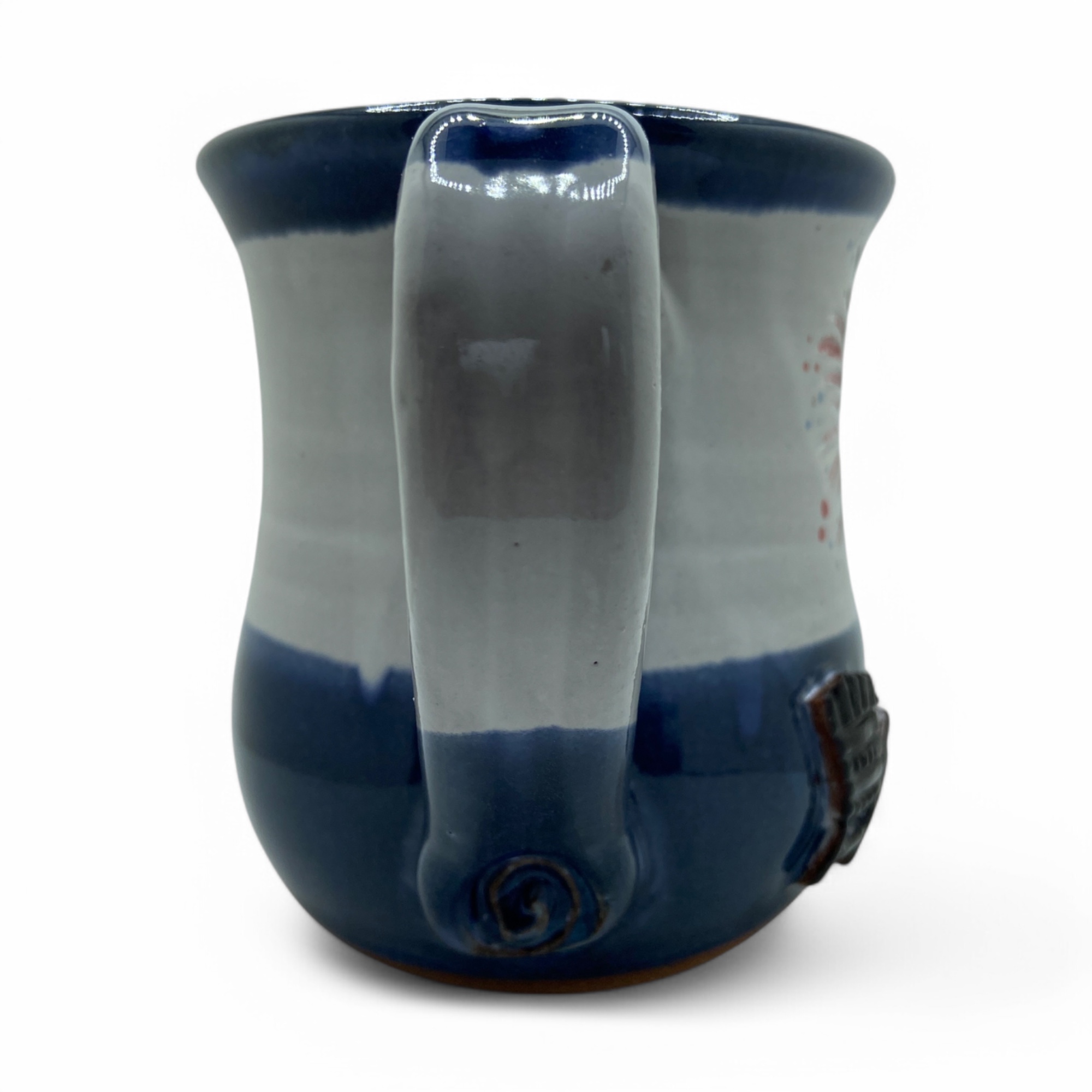 Light up your mornings with our handmade ceramic fireworks mug—a vibrant celebration of American summer vibes! Crafted with care by skilled artisans, this sturdy mug showcases a dazzling fireworks display and iconic Adirondack chairs, set against a striking red, white, and blue palette that echoes the stars and stripes. Perfect for your morning coffee, evening tea, or backyard barbecue sip, its comfortable handle and generous size make it ideal for patriots, outdoor enthusiasts, or anyone who loves a touch of handmade charm. Whether you’re reminiscing about Fourth of July celebrations or simply enjoying a moment of relaxation, this mug is the perfect gift for family, friends, or yourself.