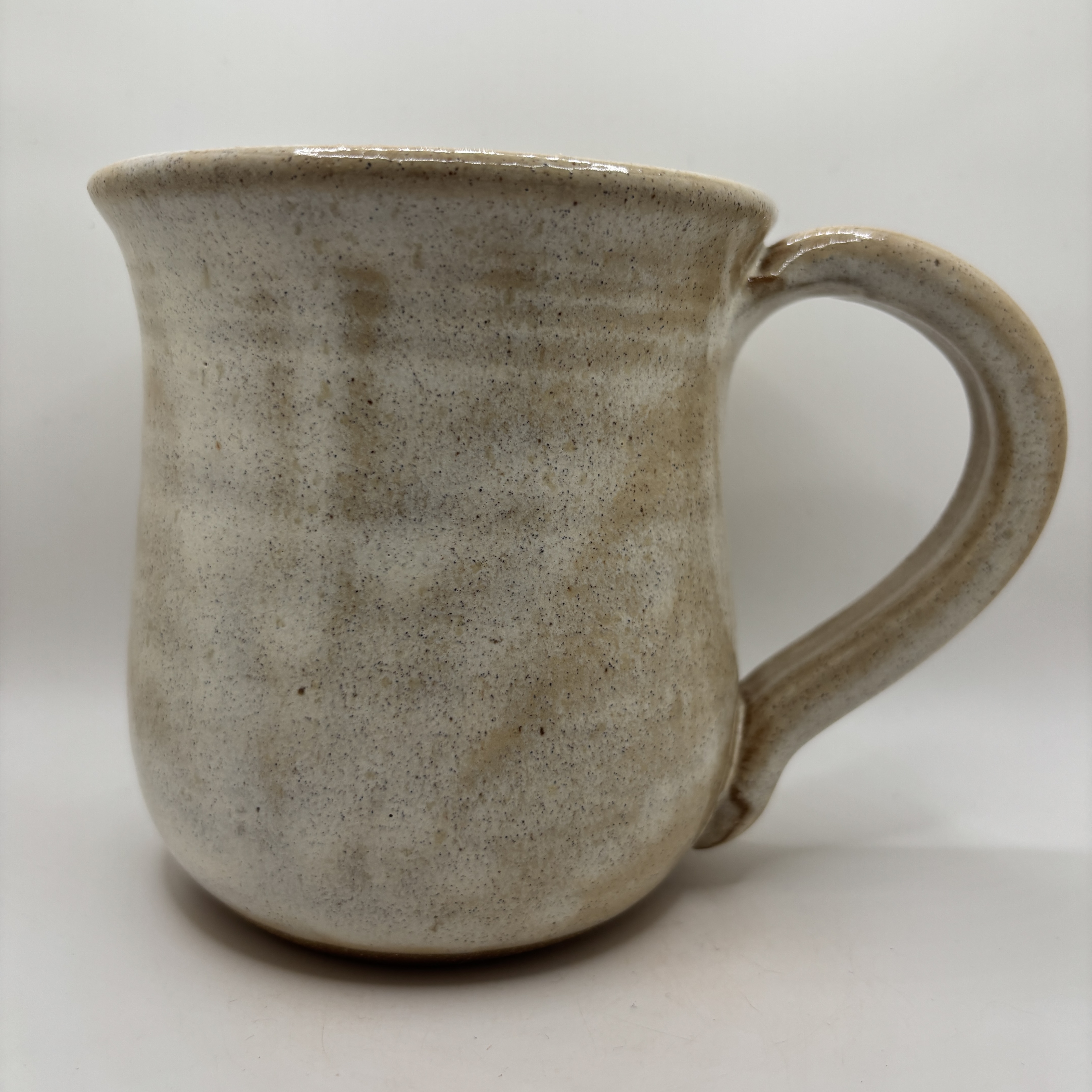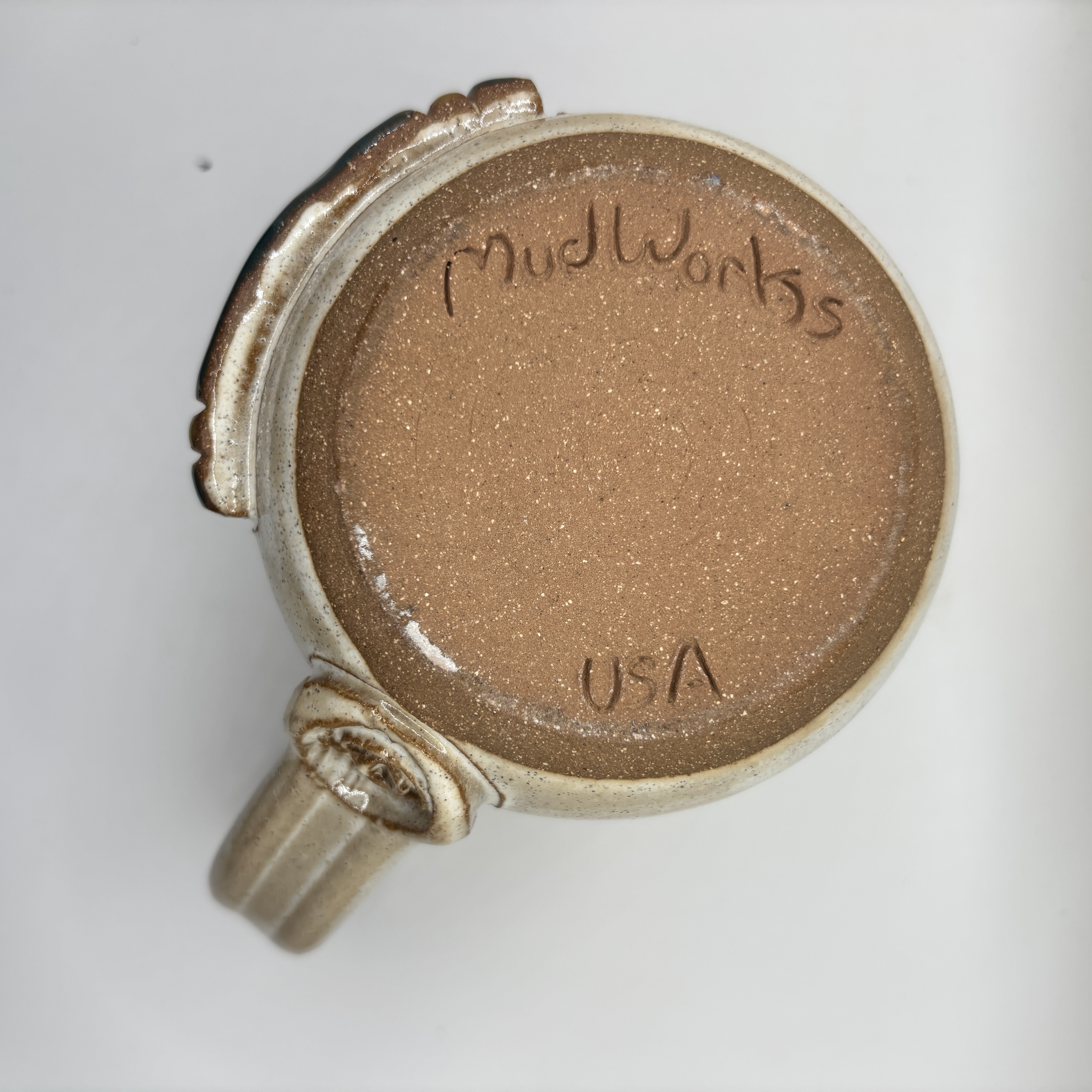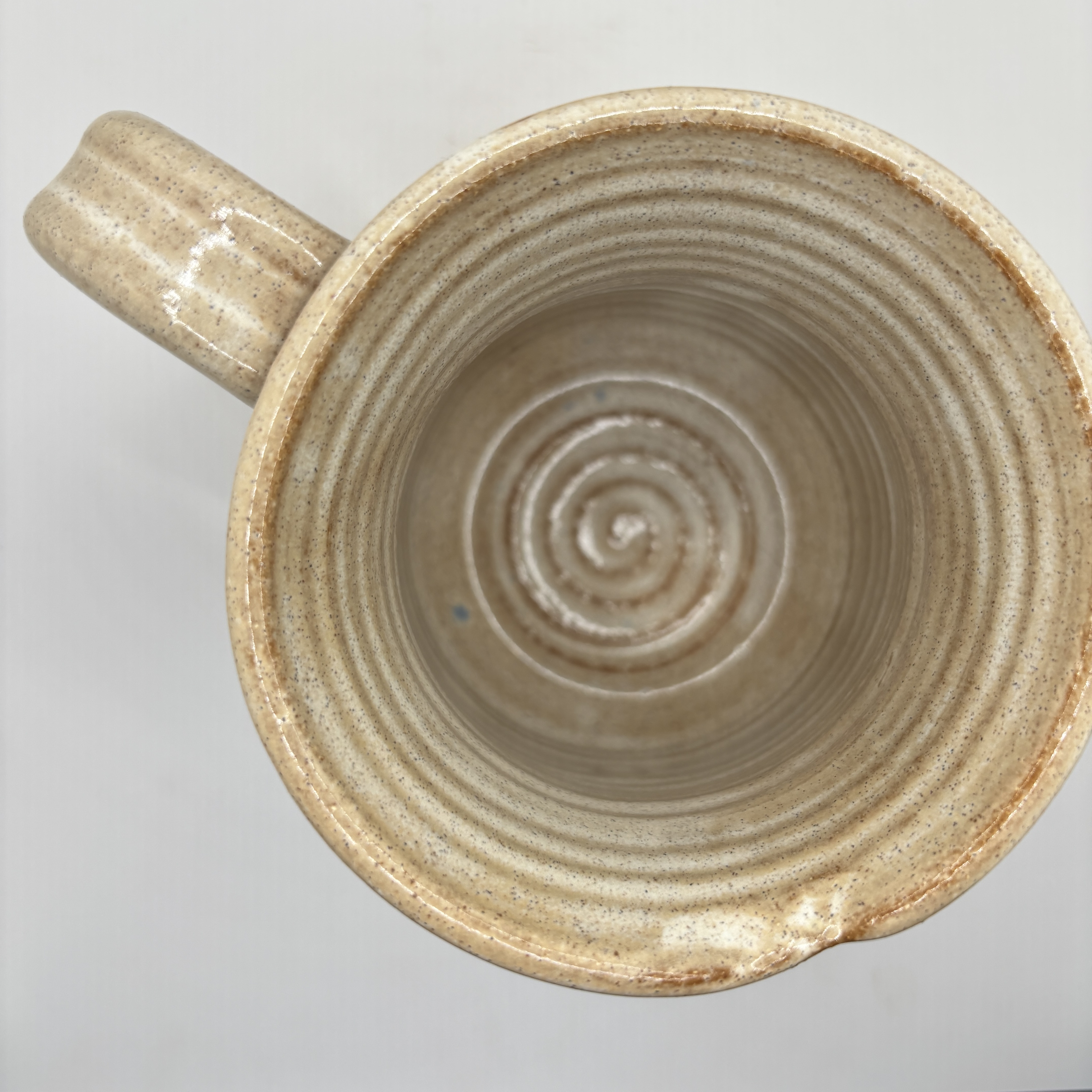 A stack of books with amug on top on a sandstone mug, Stoneware. 16-18 oz.