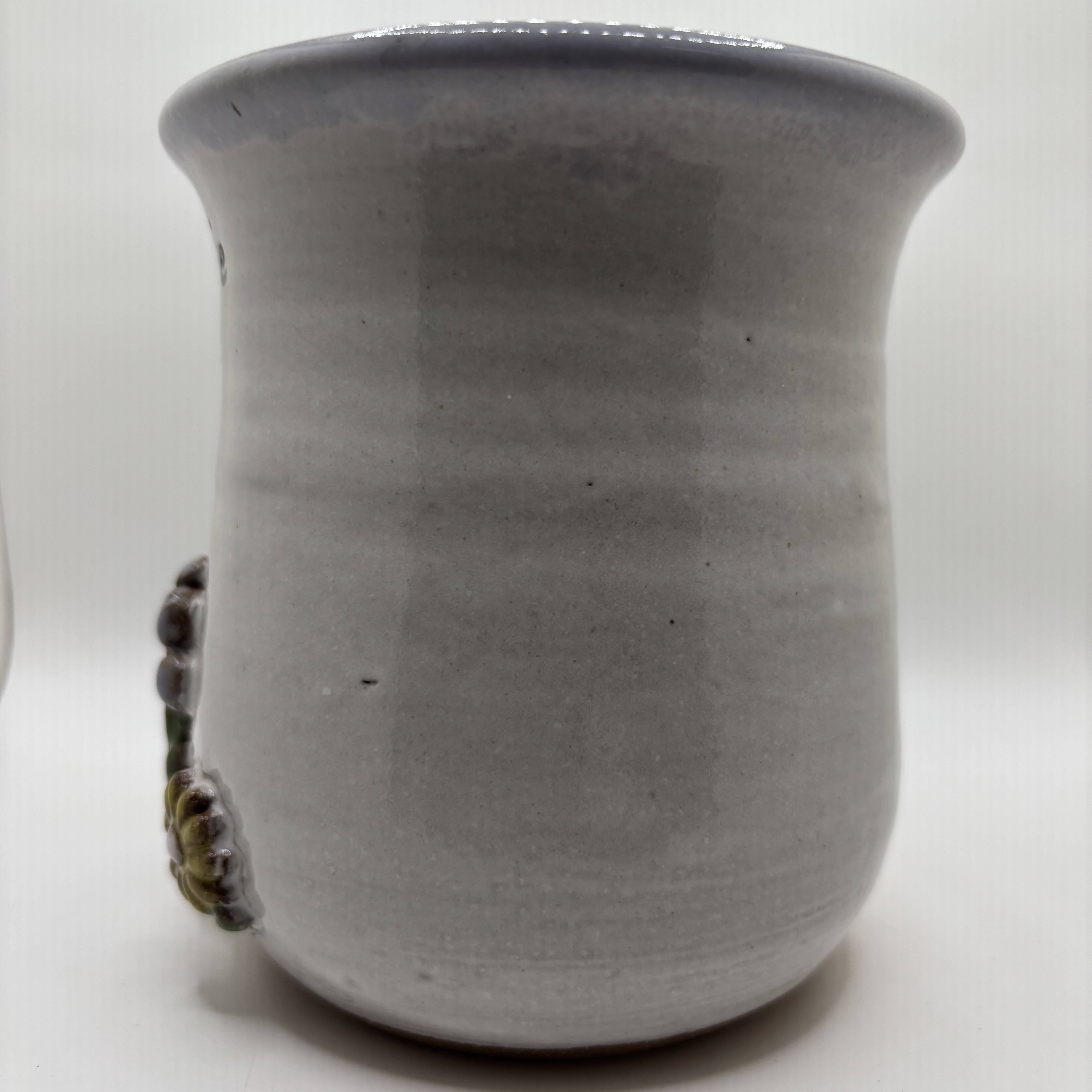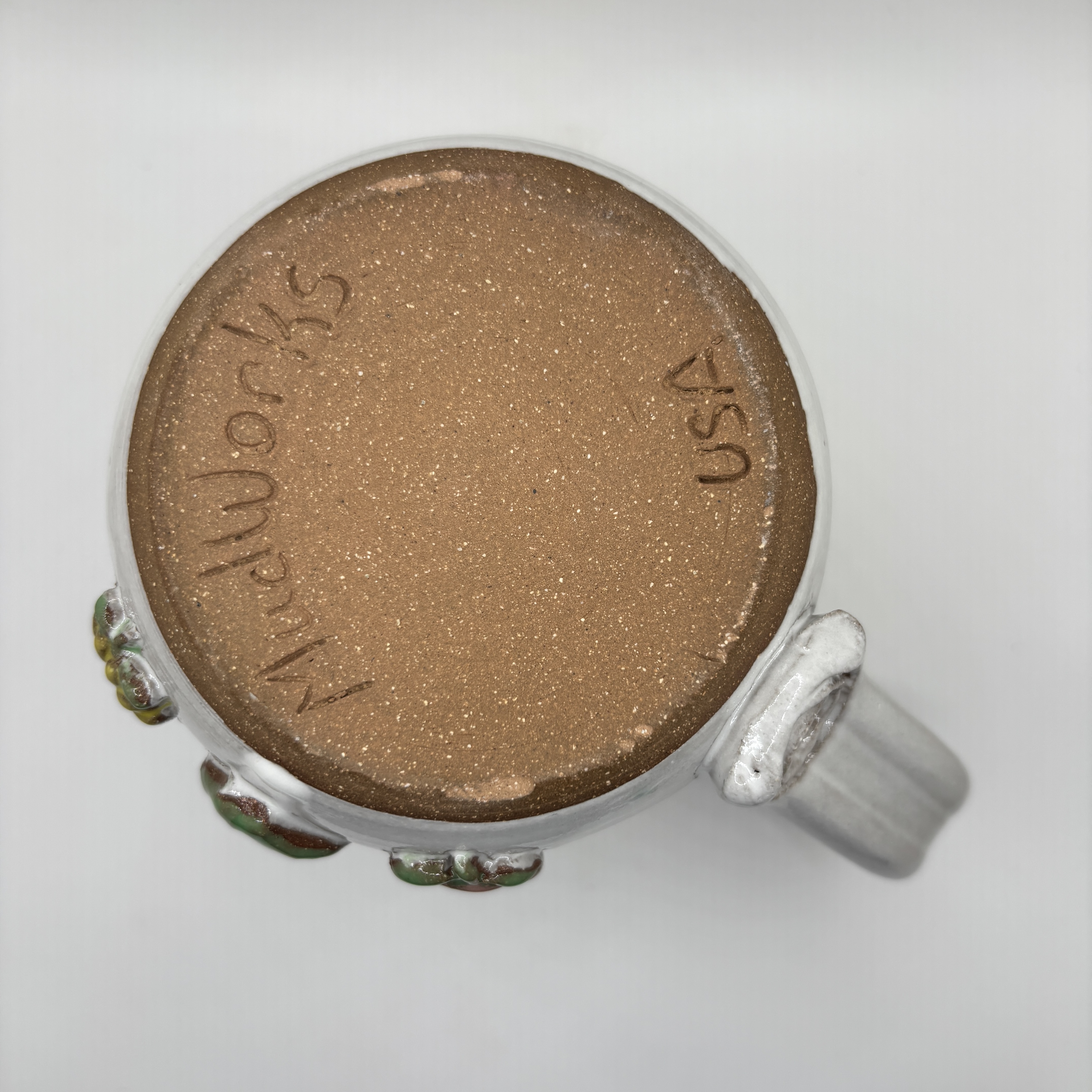 Bloom where you’re planted—every single day. This uplifting stoneware mug is hand-carved with lush bouquets of flowers gathered beautifully along the bottom, their petals and leaves full of life and movement. Right above, the inspiring words “Live life in Full Bloom” are hand-lettered in a graceful script that feels like a daily reminder to flourish. Finished in a soft, bright white glaze that’s gently sponged with vibrant purple accents, creating a delicate, watercolor-like effect that makes the flowers pop and gives the whole mug a fresh, joyful glow from rim to base. Whether you’re starting your morning with coffee, taking a midday tea break, or winding down with evening cocoa, this mug wraps your hands in encouragement and beauty. One-of-a-kind and made for flower lovers, garden dreamers, and anyone who believes every day is a chance to bloom brighter. Your new favorite mug is ready to help you live in full bloom.