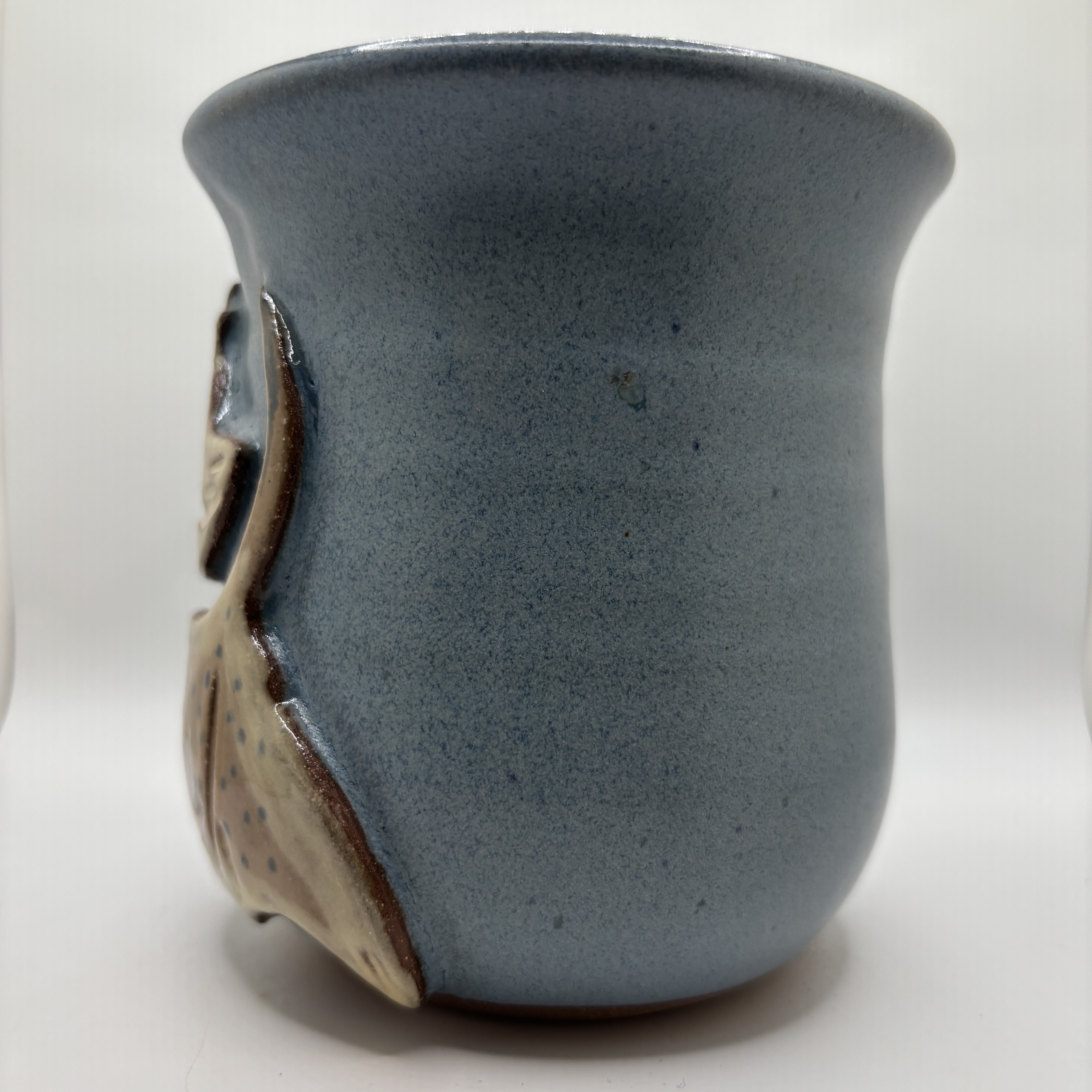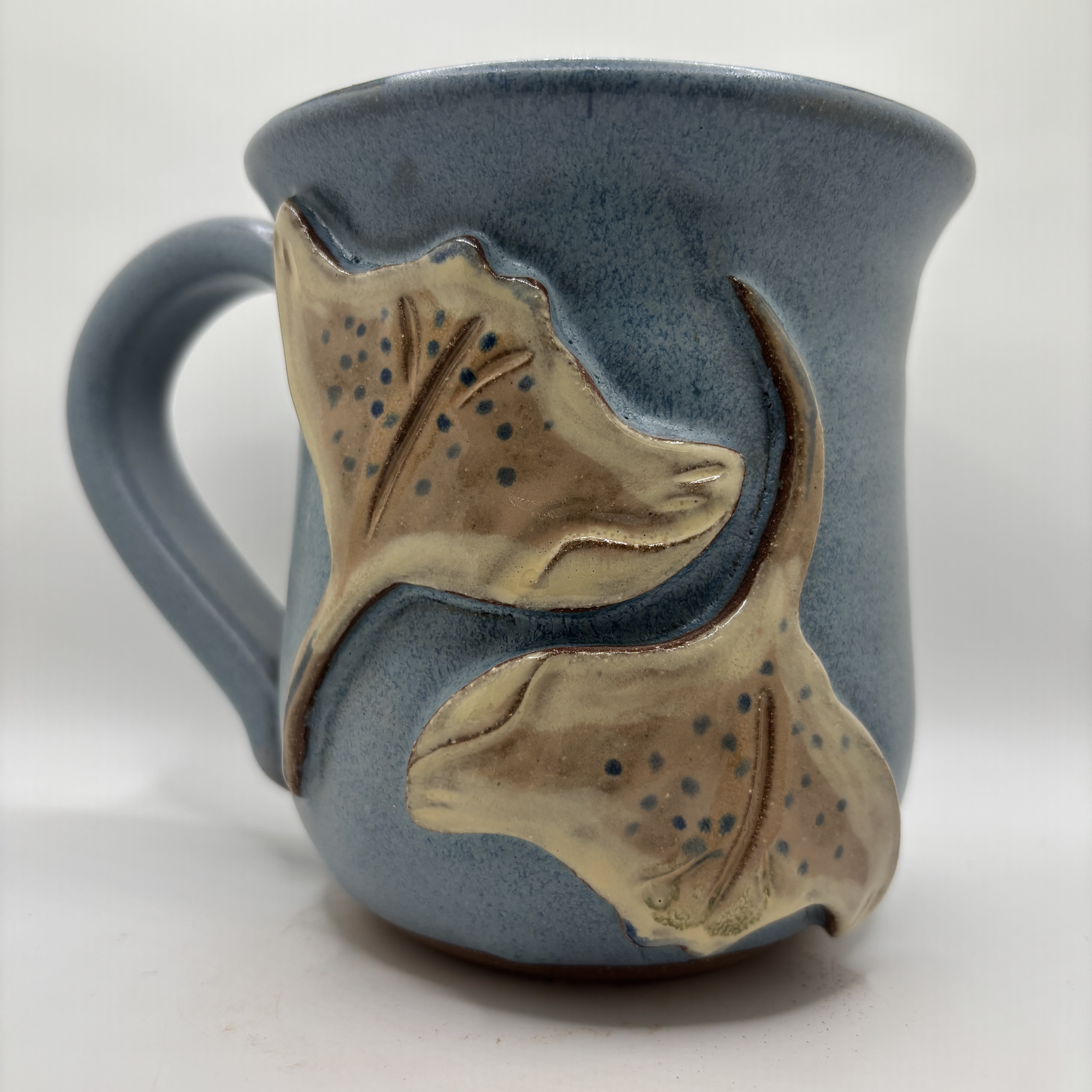 Two sting rays on a light blue mug, Stoneware. 16-18 oz.