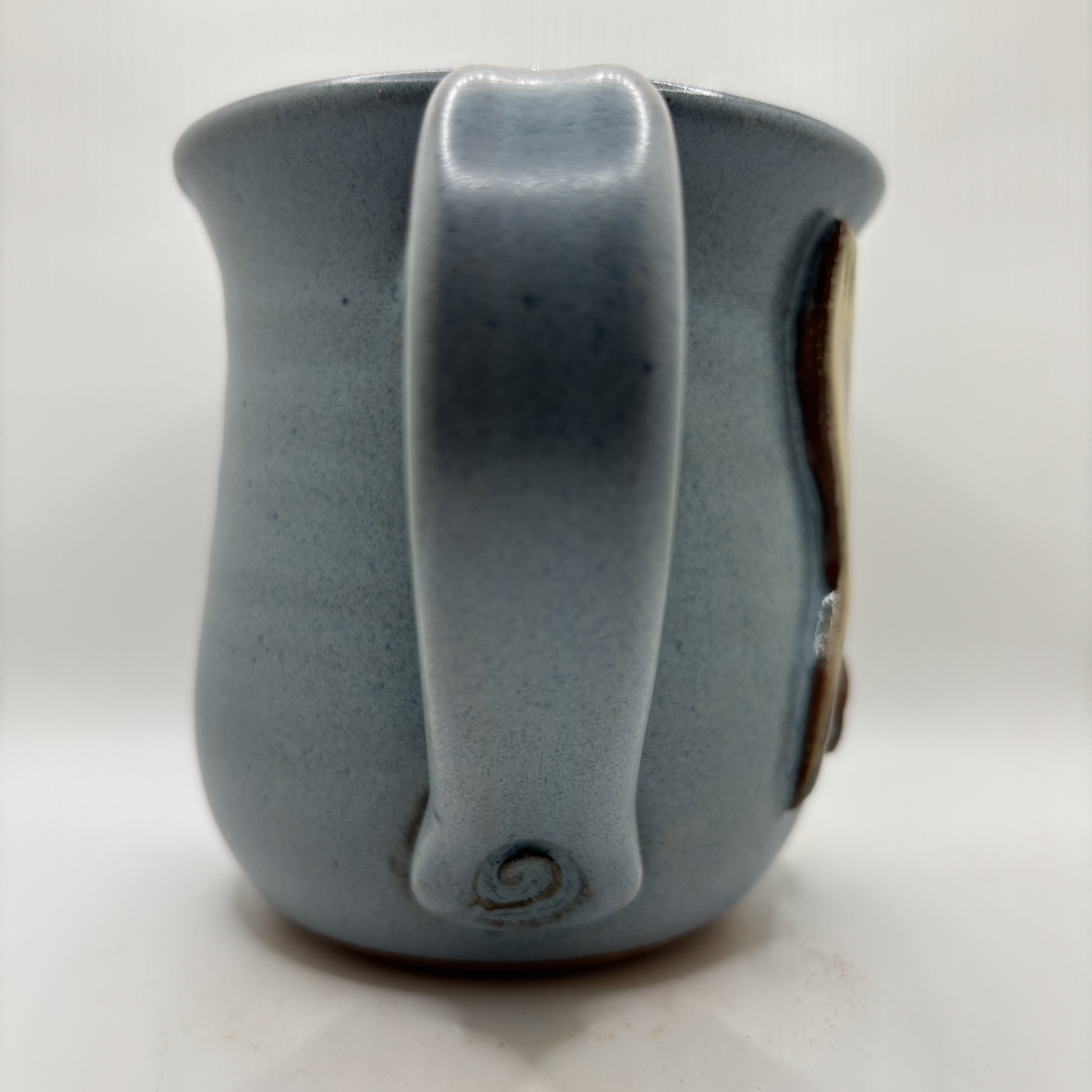 Two elegant stingrays glide in a gentle circle across the textured ocean floor on this peaceful handmade ceramic mug — their wide wings sweeping softly through the sand like a quiet underwater waltz. The entire design is bathed in our beautiful light blue glaze, giving the whole piece a serene, crystal-clear ocean glow that feels calm and inviting from every angle.Every mug is thrown, sculpted, and glazed entirely by hand, so yours will be wonderfully one-of-a-kind. The smooth, food-safe finish feels warm and soothing in your hands while keeping your coffee, tea, or iced drink perfectly hot (or cold!).Bring home a little slice of underwater tranquility and let every sip feel like a peaceful dive into the sea. This mug is ready to add calm, graceful vibes to your day!